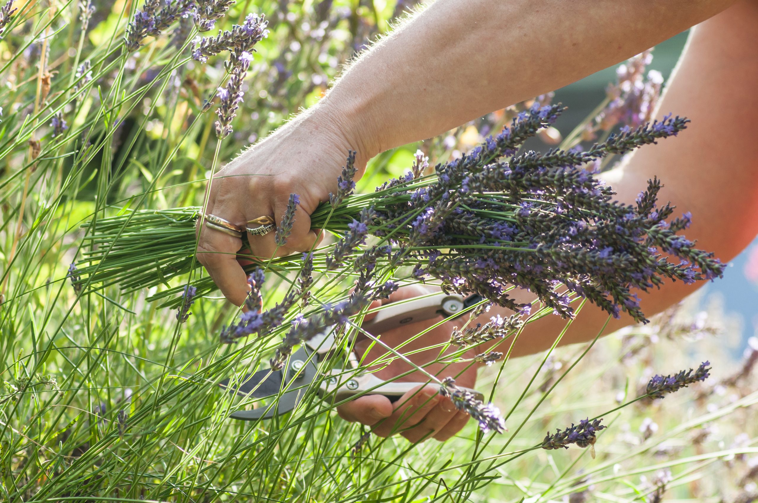 Lavendel nach der Blüte zurückschneiden. Manchmal gibt es dann sogar eine Nachblüte. Schneiden Sie alles Verblühte mitsamt den Stängeln zurück und bringen Sie die Pflanze etwas in Form. Das regt sie an, wieder schön und kompakt durchzutreiben.
