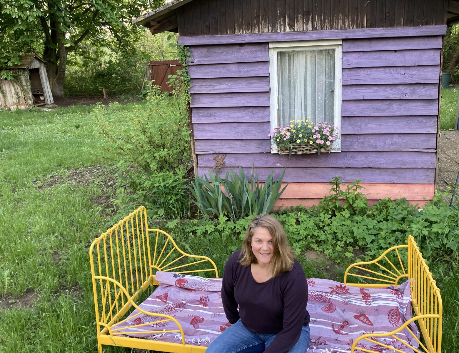 Eigentlich wohne ich ja mitten in Kitzingen in der Stadt, ich habe nicht mal einen Balkon. Aber ich habe in den letzten Jahren gemerkt, dass mir etwas fehlt, wenn ich abends aus meinem Laden nach Hause komme. Ich wollte draußen sein, mich ins Gras legen, in Bäume schauen. Ich wollte einen Ort haben, wo ich mich erholen kann, und was könnte dafür besser sein als ein eigener Garten? Was noch dazu kam: Ich wollte auch aktiv etwas dafür tun, dass es grüner und blühender in meiner Umgebung wird. Dass es wieder mehr Insekten und Vögel gibt. Das kannte ich schließlich von klein auf, ich bin zwar in Würzburg in der Stadt aufgewachsen, doch wir hatten dort immer einen großen Garten. Ich bin Designerin und beschäftige mich damit, Räume schön und lebenswert zu machen. Das wollte ich auch draußen tun. Zum Glück habe ich schnell genau das Richtige für mich gefunden: einen Garten im Nachbardorf am Main, mit großen Bäumen, vielen Sträuchern, mittendrin eine Wiese und viel, viel Platz.