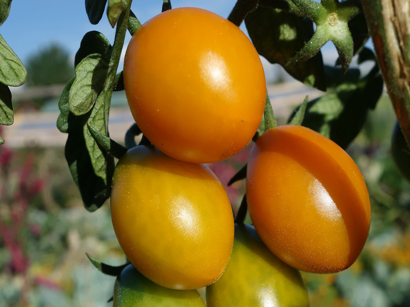 Angora Super Sweet: rote, sehr süße Cocktailtomate. Die ganze Pflanze ist behaart und wirkt graulaubig, was ihr eine edle Note gibt. Sie wirkt auch als Kübelpflanze schön. Die Früchte sind von einem leichten Flaum überzogen, der sich leicht abwischen lässt.