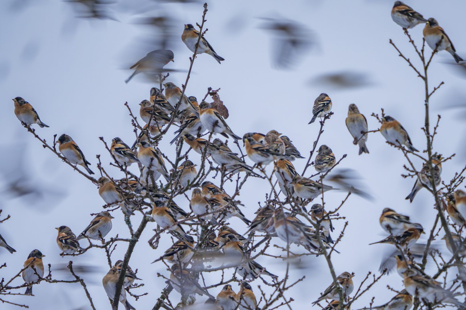 Auch Bucheckern oder Eicheln stehen bei manchen Vogelarten auf dem Speiseplan. Berühmt ist der Eichelhäher, der bereits im Herbst damit beginnt, Eicheln zu verstecken und so zur Ausbreitung der Bäume beiträgt. Der Buchfink trägt die Bucheckern quasi schon im Namen. Auch Bergfinken, die sich im Winter zu Schwärmen von mehreren Millionen Individuen zusammenschließen können, lieben Bucheckern.