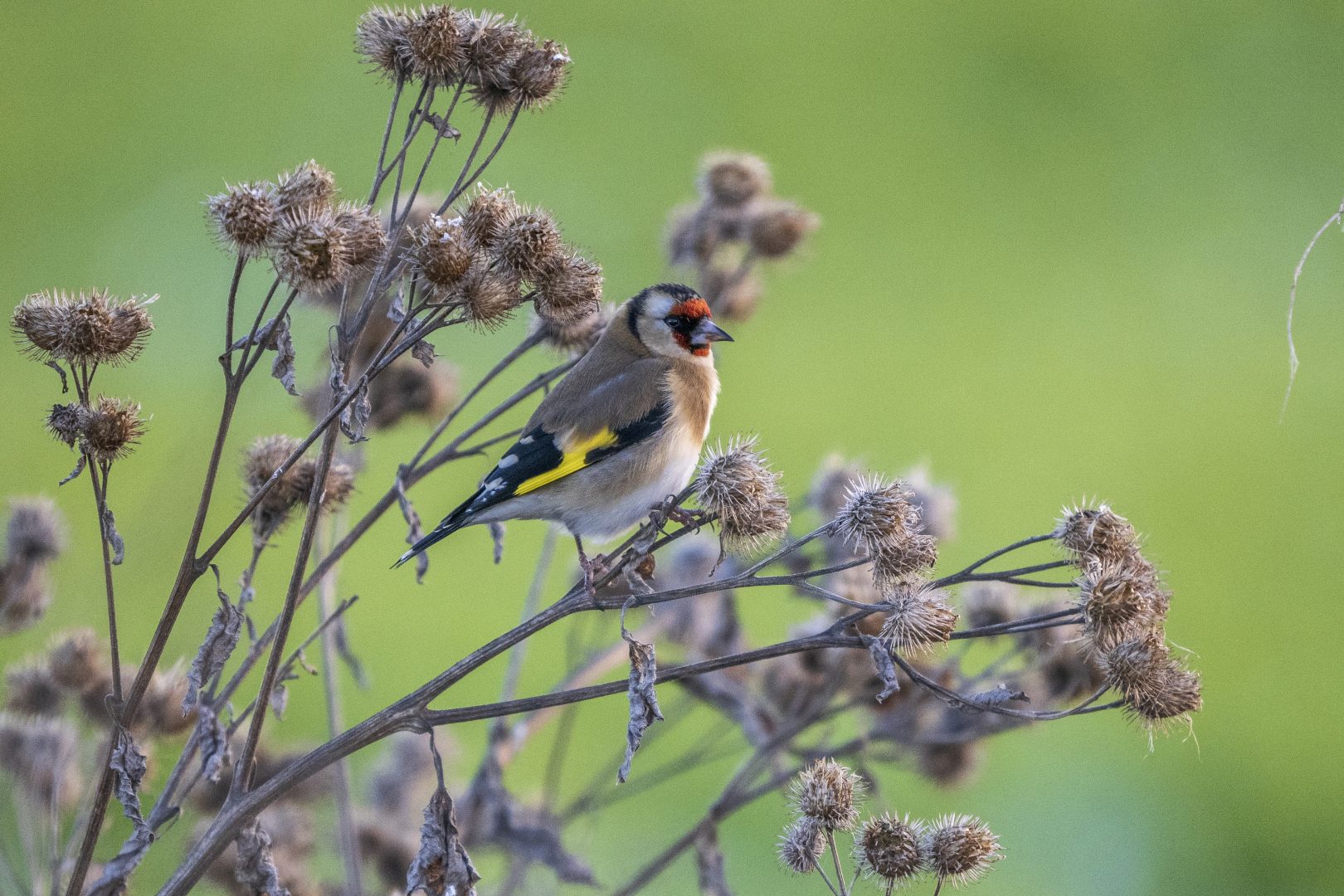 Auch verblühte Pflanzen dürfen ruhig stehen bleiben. Die Samenstände von Disteln, Karden oder Flockenblumen liefern bis in den Spätwinter wertvolles Futter und locken Stieglitze, Goldammern und Grünfinken in den Garten. Zudem überwintern in den hohlen Pflanzenstängeln auch Insekten, die Blaumeisen leicht aus den Stängeln herauspicken und verspeisen können.